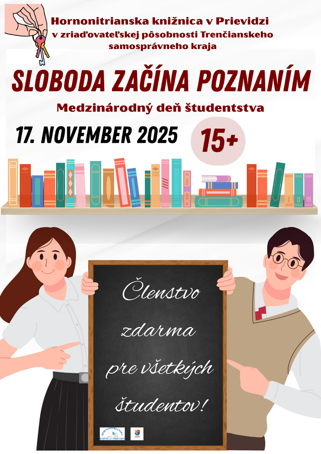 Pri príležitosti Dňa študentstva - 17. novembra 2025, sme si pre vás pripravili darček: ročné členstvo v Hornonitrianskej knižnici v Prievidzi úplne zadarmo.