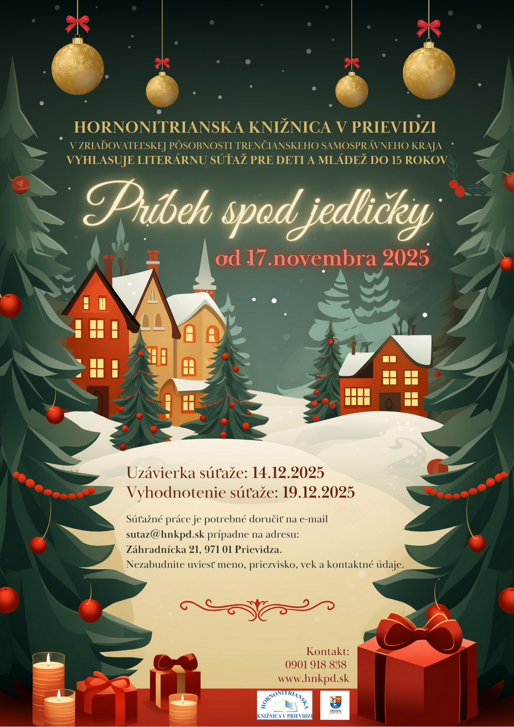 Naša vianočná literárna súťaž je už peknou tradíciou s pevným miestom v srdciach vás, našich čitateľov. Preto aj tento rok naša knižnica vyhlasuje súťaž o najkrajšiu vianočnú poviedku s názvom Príbeh spod jedličky.