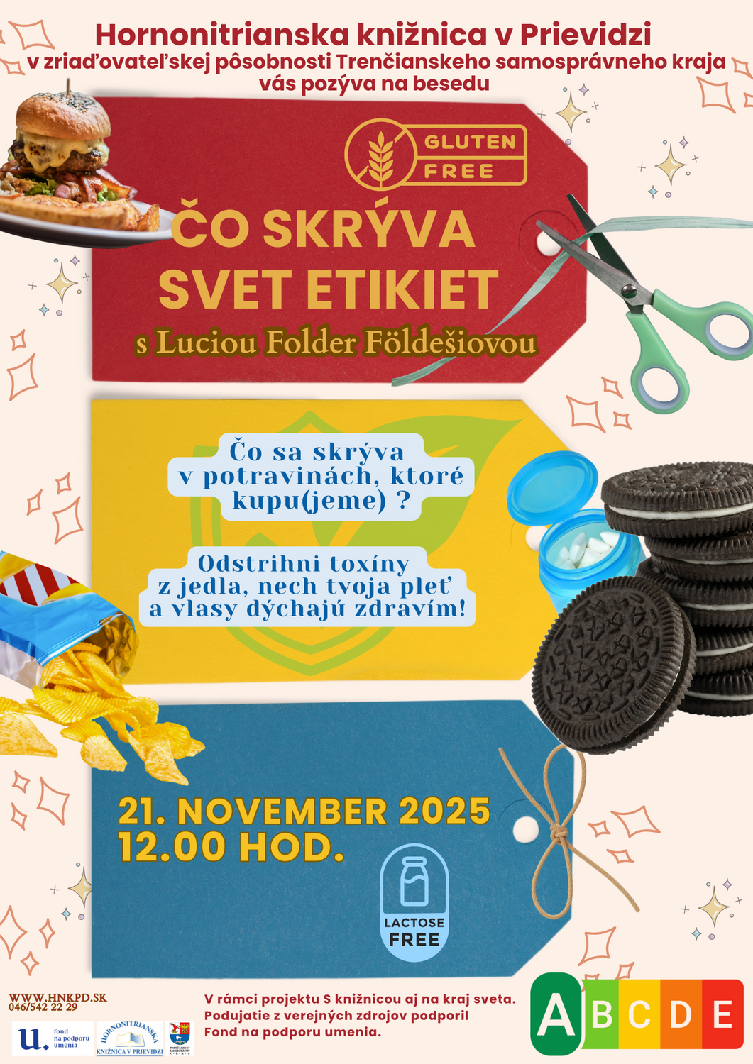 Počas besedy s názvom „Čo skrýva svet etikiet“ priblíži študentom, ako správne čítať etikety na potravinách, čo všetko sa dá vyčítať zo zloženia výrobkov a prečo je dôležité vedieť, čo vlastne každý deň konzumujeme. Spolu sa pozrieme na to, že aj malé písmenká na obale potravín v sebe ukrývajú množstvo dôležitých informácií, ktoré môžu pomôcť lepšie sa orientovať v každodennej strave.